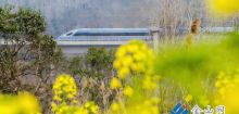 高鐵列車(chē)穿行鎮(zhèn)江春日山野
